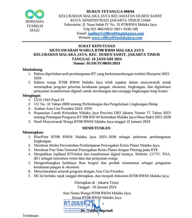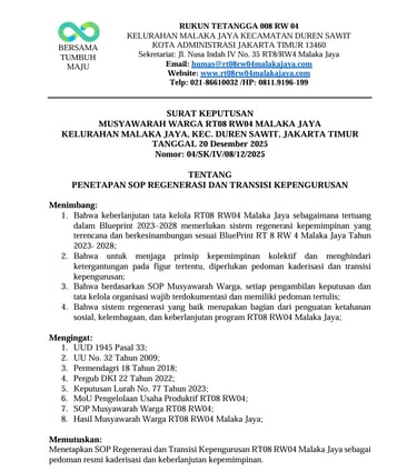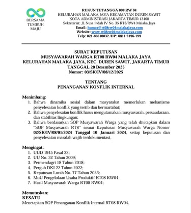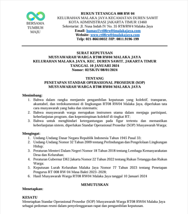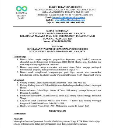 STANDAR OPERASIONAL PROSEDUR (SOP) MUSYAWARAH WARGA RT08 RW04 MALAKA JAYA