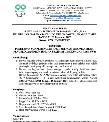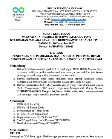 PEMBAGIAN HASIL SEBAGAI PEDOMAN RESMI PENGELOLAAN KEUNTUNGAN USAHA DI LINGKUNGAN RT08 RW04