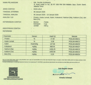 Berkontribusi pada Ketahanan Pangan: Lele adalah sumber protein hewani yang terjangkau, bergizi tinggi, dan dapat dibudidayakan secara efisien. Dengan mengembangkan berbagai produk olahan lele yang praktis dan sehat, kami ingin menjadikan lele sebagai sumber protein utama keluarga Indonesia.